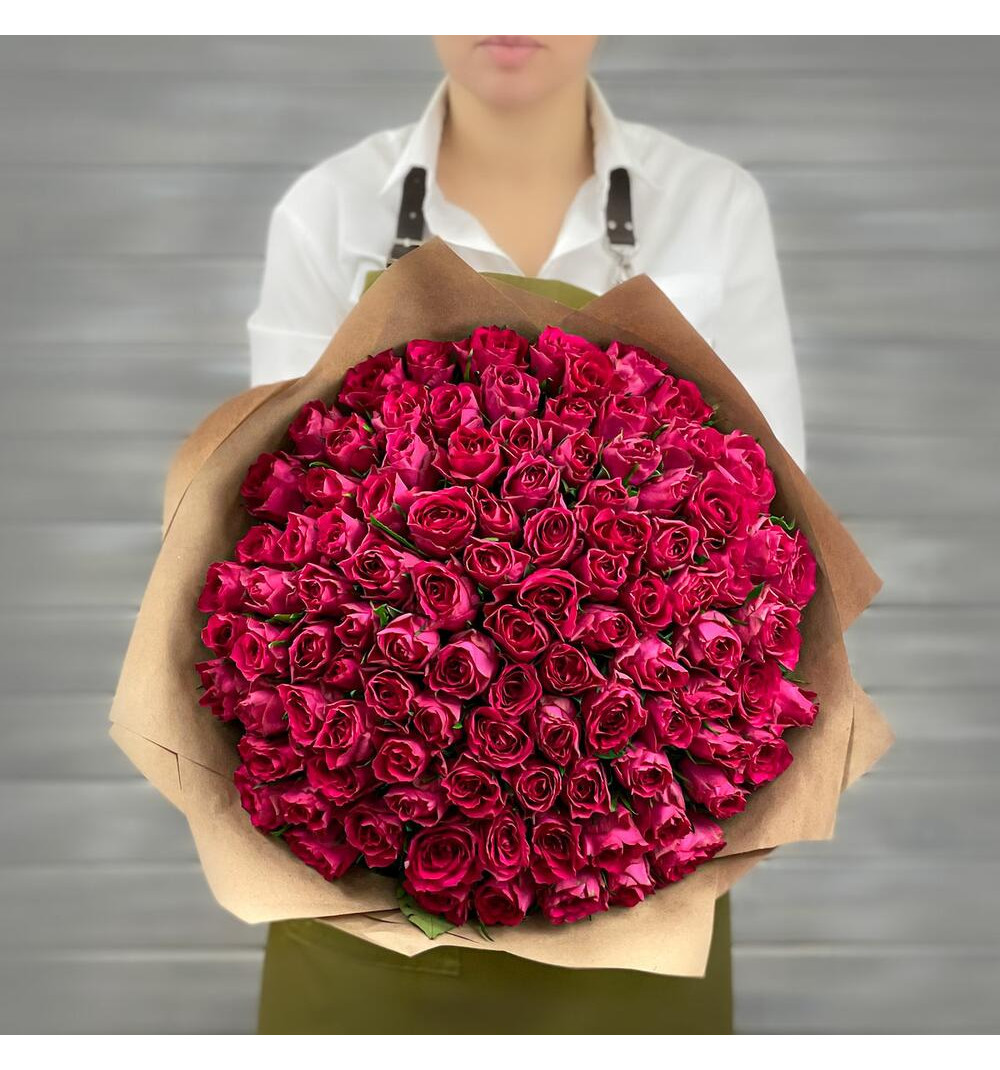 Букет из 101 малиновой розы - это великолепная проява страсти и любви. Собранная из изысканных роз тонкого малинового оттенка, эта композиция поражает своей красотой и впечатляющим величием. Каждая роза искрится своей неповторимой красотой и символизирует глубокие чувства и преданность. Этот величественный букет подарит особенные моменты счастья и радости тому, кто его получит, и запомнится на долгие годы.
